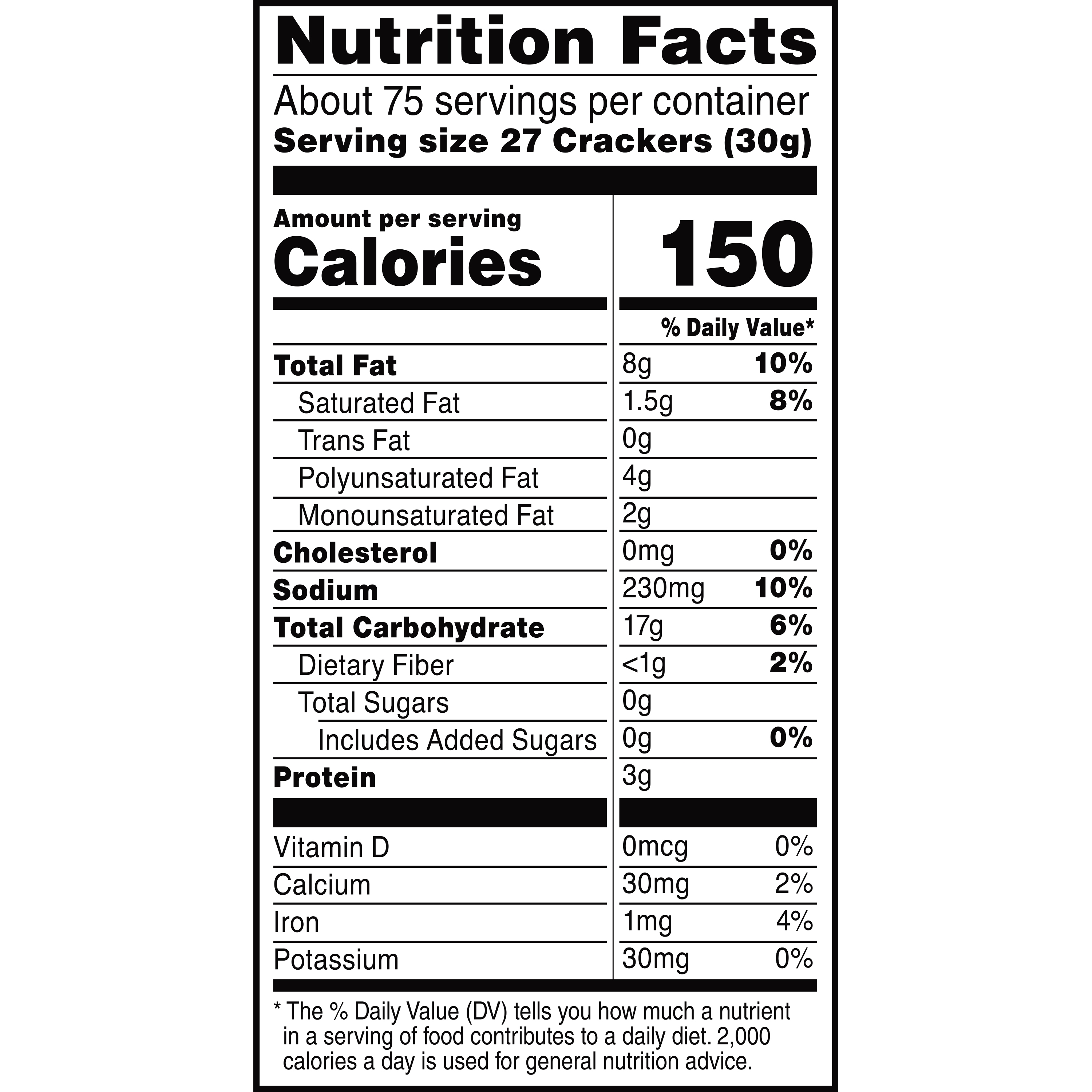 * The % Daily Value (DV) tells you how much a nutrient in a serving of food contributes to a daily diet. 2,000 calories a day is used for general nutrition advice.